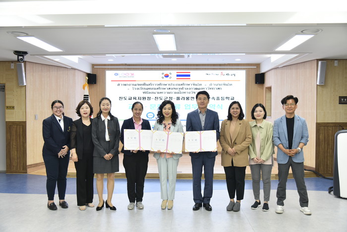 학술협력 협약식에는 대한민국 글로컬 미래교육 박람회 참여를 위해 한국을 방문한 태국 교육관계자와 진도에 거주하고 있는 태국 다문화 가족 등 30여 명이 참석했다.
