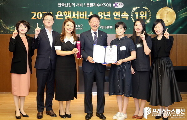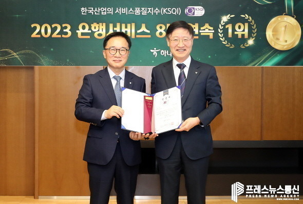 [프레스뉴스] 김대일 기자= 하나은행(은행장 이승열)은 한국능률협회컨설팅(KMAC)이 주관하는「2023년 한국산업 서비스품질지수(KSQI: Korean Service Quality Index)」 고객 접점 부문에서 8년 연속 1위 은행에 선정됐다고 밝혔다.