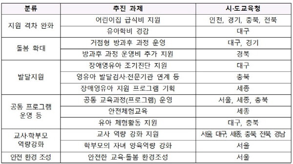 선도교육청은 지역의 자원을 활용해 유치원·어린이집 간 교육·돌봄 격차를 완화하고 교육의 질을 높이기 위한 준비를 선제적으로 시행하게 된다.