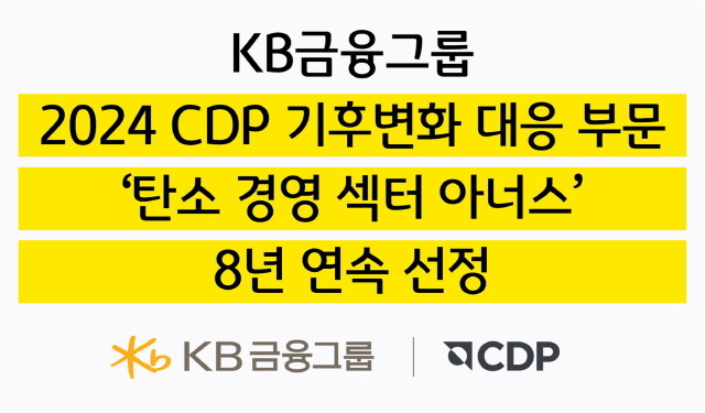 ▲KB금융, 2024 CDP 기후변화 대응 부문 ‘탄소경영 섹터 아너스’ 8년 연속 선정(사진=KB금융그룹) |