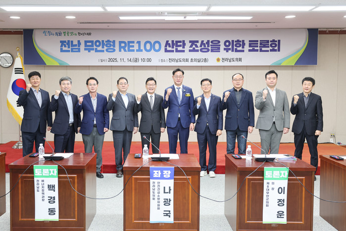 토론에서는 RE100 특별법 추진 현황과 전남도의 산단 조성 계획이 점검됐다. 현재까지 김원이 의원이 발의한 ‘재생에너지 자립 도시 지원 특별법’ 등 총 3건의 법안이 발의되었으며, 2026년 상반기 특별법 제정 및 산단 공모 절차 돌입이 예정되어 있다.