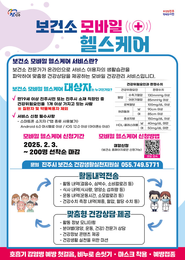 | ▲진주시보건소는 2월 3일부터 2025년 모바일 헬스케어 사업 참여자 200명을 선착순 모집한다.(사진=진주시) |