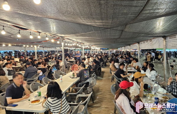 | ▲오는 29일까지 평촌중앙공원 다목적운동장에서 안양춤축제와 함께 ‘2024 먹거리 한마당’이 개최된다. 27일 시민들이 다목적운동장에서 가을밤을 즐기고 있다.(사진=안양시) |