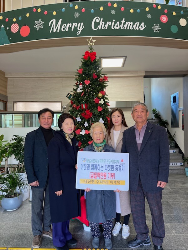 정석 나산면장은 “경기침체와 고물가 등으로 경제적 어려움이 가중된 상황 속에서도 따뜻한 마음을 나누고자 기부에 동참해 주신 모든 분들께 감사드린다”며 “소외된 이웃에게 온정을 나누고 도움이 필요한 곳에 맞춤형 지원을 할 수 있도록 최선을 다하겠다”고 전했다.