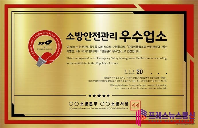 예정 공고 기간이 끝나면, 투명하고 공정한 우수업소 선정을 위해 10월 초 외부위원 등이 참여하는 심의회를 열어 최종 인정 대상을 확정한다. 이후 최종 선정 업소의 영업주에게 적합 사실을 통보하고, 오는 11월 9일 ‘소방의 날’에 우수업소를 공표할 계획이다.