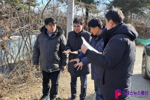 | ▲김태희 의원이 지난 1월 안산 공공주택지구 조성 지역 내 논란이 되고 있는 생활폐기물 소각장과 하수처리장 조성 계획 위치를 경기주택도시공사와 현장을 방문했다.(사진=경기도의회) |