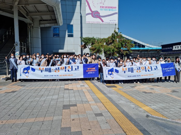 빛가람청렴실천네트워크의 회장기관인 전라남도교육청은 27일(화) 광주 송정역 일원에서 부패공익신고를 주제로 ‘반부패 청렴캠페인’을 벌였다.