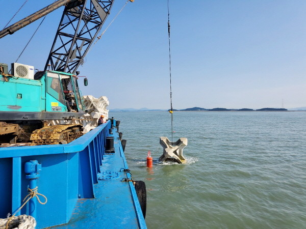 ▲ 무안군, 탄도해역에 인공어초 168개 투하 |