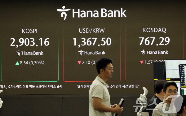 ▲16일 오전 서울 중구 하나은행 딜링룸 전광판에 개장 시황이 나오고 있다.(사진=뉴스1) |