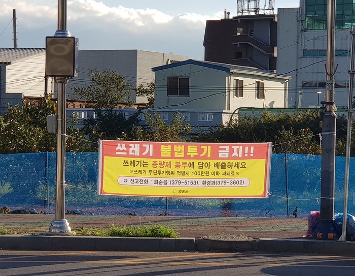 | ▲ 화순군 쓰레기 불법투기 금지 현수막(사진제공=화순군) |