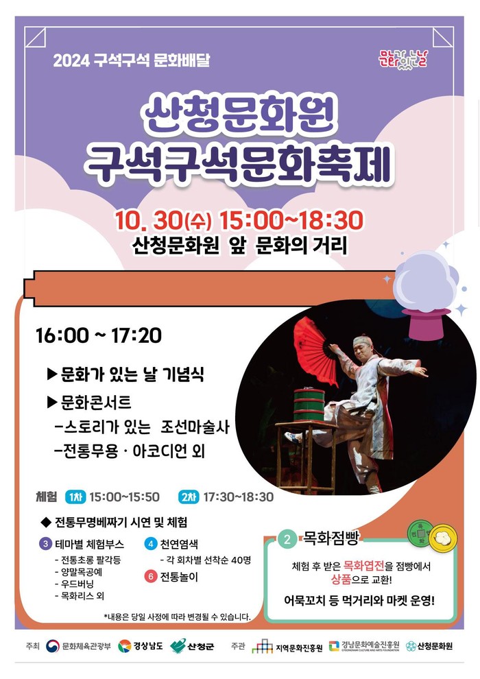 | ▲산청군은 오는 30일 산청읍 문화거리에서 ‘2024 문화가 있는 날-산청 구석구석 문화축제’를 개최한다(사진=산청군) |