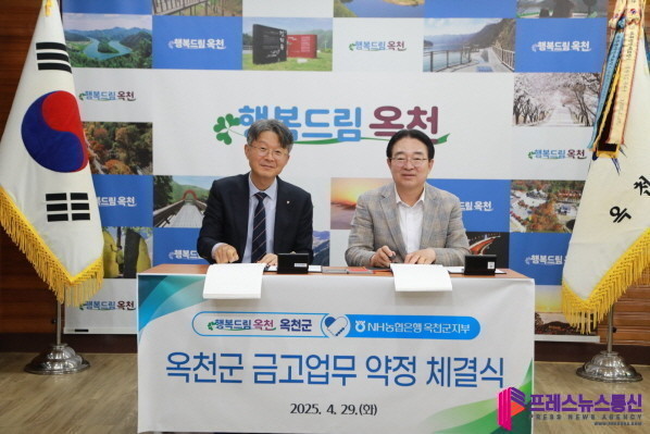 [프레스뉴스] 류현주 기자= 옥천군은 29일 NH농협은행 옥천군지부와 옥천군의 세입‧세출행정 및 자금을 관리할 ‘차기 군 금고 약정’을 체결했다.