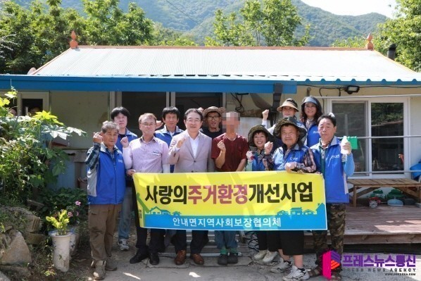 같은날 안내면지역사회보장협의체(공동위원장 이규태, 민간위원장 권명길)도 취약계층의 가정을 찾아 주거환경 개선 봉사활동을 펼쳤다.