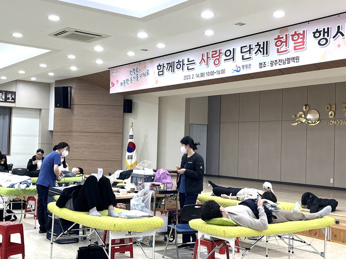 [전남=프레스뉴스] 차윤기 기자= 전남 영광군(군수 강종만)은 2월 14일 군청 3층 회의실에서 군 산하 공직자와 관내 유관기관.사회단체 임직원 및 주민 등을 대상으로 동절기 사랑의 단체헌혈을 실시했다.