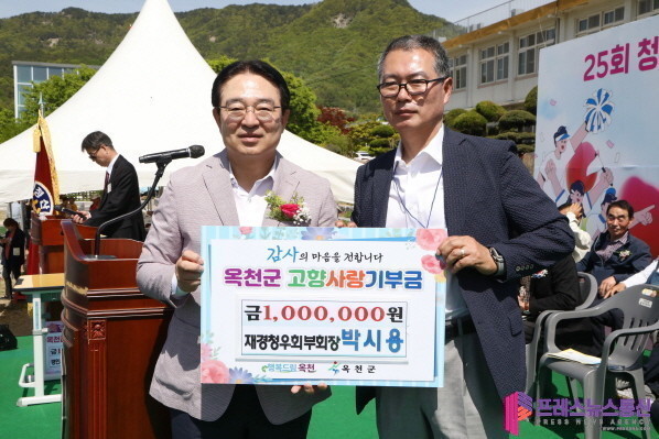 한편, 지난 27일 옥천군 청산면 청산중학교에서 열린 총동문 체육대회에서 졸업생 박광용 경인유화(주) 대표와 박시용 재경청우회 부회장이 각각 100만 원을 기탁했다.