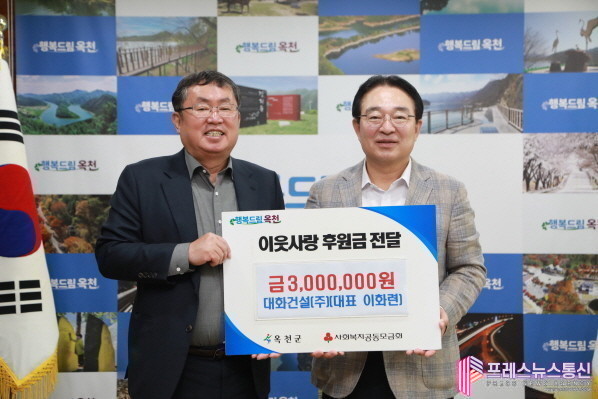 황규철 옥천군수는 “기탁해주신 대화건설㈜과 박광용 경인유화(주) 대표와 박시용 재경청우회 부회장님께 감사드린다”며“이번 기부가 단순한 금액 이상의 의미로 지역사회 곳곳에 따뜻한 온기를 전하는 계기가 되기를 바란다”고 전했다.
