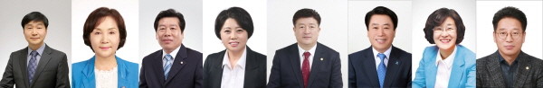 | ▲ 사진 왼쪽부터 김태희 이경애 김동수 김진숙 윤태천 정종길 나정숙 윤석진 의원의 모습. |