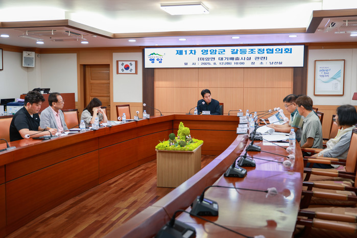 [전남=프레스뉴스] 강래성 기자= 영암군(군수 우승희)이 12일 군청에서 미암면의 한 대기배출시설 운영 관련 주민·업체 간 의견 조율 등을 위해 ‘제1차 갈등조정협의회’를 개최했다.