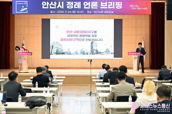 [프레스뉴스] 장현준 기자= 안산시(시장 이민근)는 24일 오전 시청 대회의실에서 개최한 9월 언론브리핑에서 민선8기 역점사업 가운데 하나인 경기 경제자유구역 안산 사동(ASV*) 지구의 추가지정을 위한 준비가 순조롭게 진행되고 있다고 밝혔다.