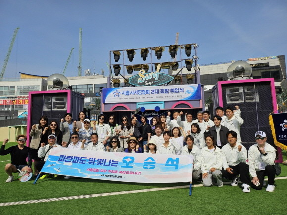 | ▲시흥시서핑협회는 지난 19일 웨이브파크 광장 내 무대에서 내빈 등 100여 명이 참석한 가운데 제2대 회장 취임식을 개최했다.(사진=시흥시) |