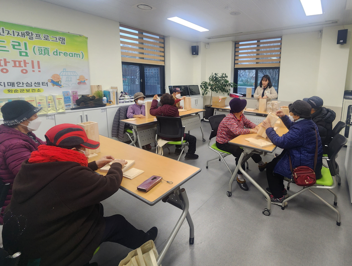 이번 봉사활동은 화순군치매안심센터를 이용하시는 이용객들이 직접 참여하여 치매 예방을 위한 교구를 완성하였으며, 만들어진 교구는 치매안심센터 이용객들이 사용하게 된다.