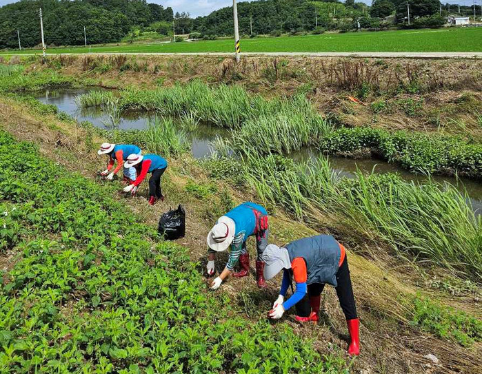 13일 군에 따르면, 함평군 환경보전연합(의장 최형택) 소속 단체인 푸른함평지킴이(회장 황영례) 회원들이 무더위에도 불구하고 읍·면별로 ‘샛강 살리기’를 위해 구슬땀을 흘리며 하천 환경정화활동을 실시하고 있다.