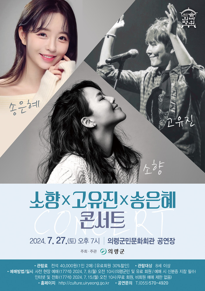 | ▲의령군민문화회관 ‘소향X고유진X송은혜 콘서트’ 포스터(사진=의령군) |