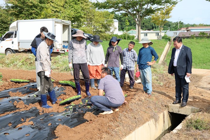 이번 교육은 농업회사법인 농바름 강행원 대표의 강의로 진행됐으며 교육생들은 약 330㎡(100평) 규모의 노지 영농실습장에서 배추 파종과 정식, 관리 요령 등을 실습했다.
