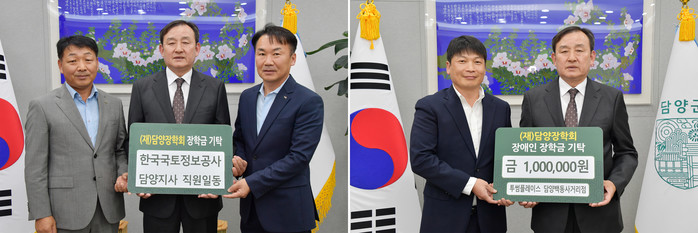 담양군은 투썸플레이스 담양백동사거리점(대표 박현정)과 한국국토정보공사 담양지사(지사장 서영채)에서 각 100만 원을 장학금으로 기탁했다고 1일 밝혔다.