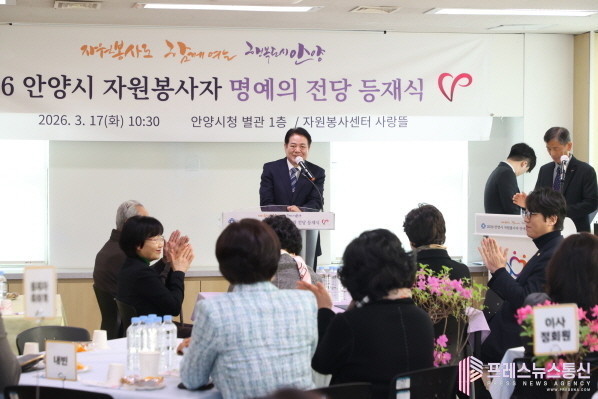| ▲안양시자원봉사센터는 17일 2026 자원봉사자 명예의 전당 등재식을 개최했다.(사진=안양시) |
