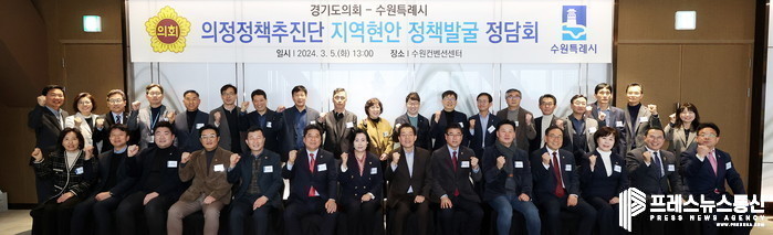 [프레스뉴스] 류현주 기자= 경기도의회(의장 염종현) 의정정책추진단이 지난 5일 수원특례시에서 ‘지역 현안 정책발굴 정담회’를 열고 수원지역 정책과제와 도의회 차원의 지원사항을 논의했다.