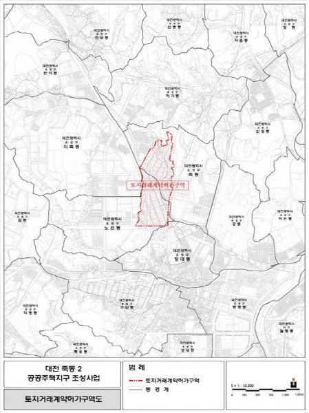 이번 토지거래허가구역으로 지정되는 신규택지는 지족동(0.01㎢), 죽동(0.4㎢), 노은동(0.43㎢), 장대동(0.01㎢) 등 총 0.85㎢, 4개동이다.