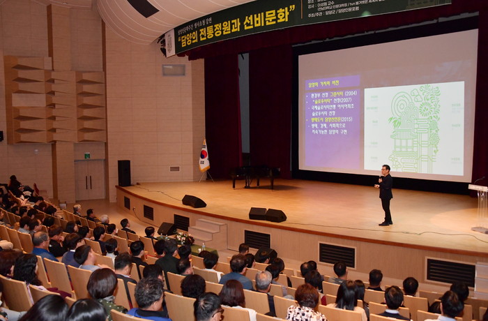 강연에서는 면앙정 송순과 송강 정철로 대표되는 담양 곳곳의 누정 문화의 가치를 설명하며, 세계 문화유산 등재를 비롯한 세계화를 위해 담양군이 나아가야 할 방향을 제시해 눈길을 끌었다.
