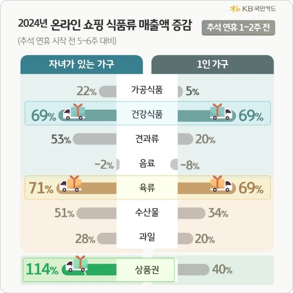 ▲2024년 온라인 쇼핑 식품류 매출액 증감 그래픽(사진=KB국민카드) |