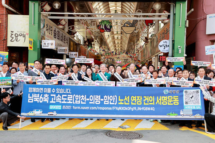 [프레스뉴스] 정재학 기자=의령군은 남북6축 고속도로의 합천의령함안 구간 연장을 촉구하는 범군민 서명운동을 8일 의령전통시장에서 전개했다고 밝혔다.