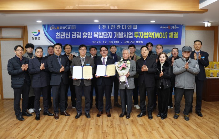 [전남=프레스뉴스] 강래성 기자= 장흥군은 지난 12월 30일 ㈜천관디엔씨와 ‘천관산 관광·휴양 복합단지 개발사업’ 투자협약을 체결했다고 밝혔다.