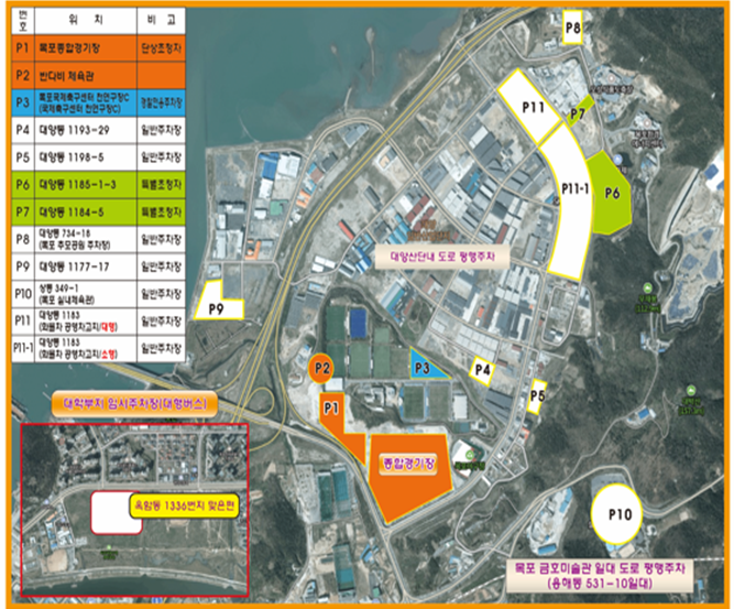 목포시는 먼저 주차장의 경우 기존 시설을 활용한 주차장 3,060면과 임시조성 주차장 2,590면을 확보했고, 대양산단 인근 도로변 일부구간에 평행주차도 가능하도록 조치했다.