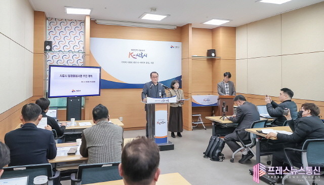 | ▲10일 시청 브리핑룸에서 심윤식 복지국장이 시흥형 통합 돌봄 추진 계획을 설명하고 있다.(사진=시흥시) |