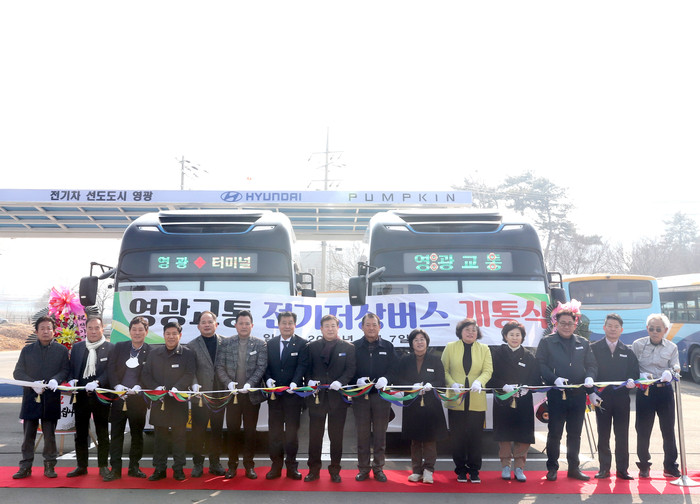[전남=프레스뉴스] 차윤기 기자= 전남 영광군은 2월 7일 영광교통 차고지에서 강종만 군수, 강필구 의장, 최주태 영광교통대표 등이 참석한 가운데 군 단위 최초 친환경 전기저상버스 개통식 및 운행을 시작했다.