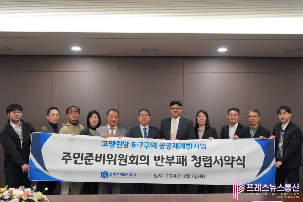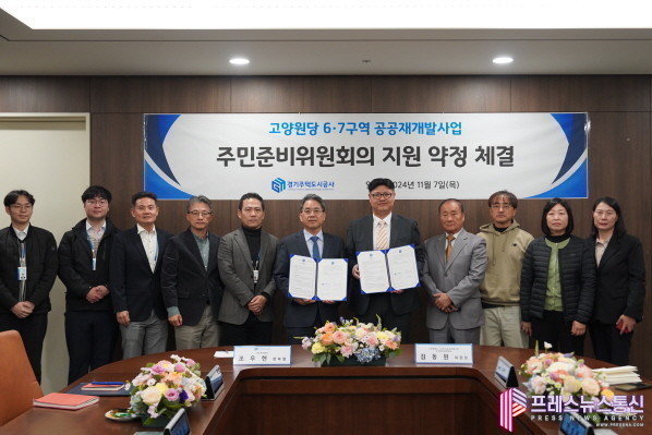 [프레스뉴스] 류현주 기자= 경기주택도시공사(GH)는 7일 고양원당6·7구역 공공재개발사업의 원활한 추진을 위해 주민준비위원회의(이하 준비위)와 협력을 위한 약정서를 체결했다.