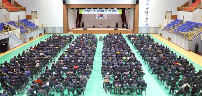 ▲영광스포티움 국민체육센터에서 관내농업인 1,000여 명이 참석한 가운데 ‘2023년 농기계 안전교육’을 실시했다. (사진제공=영광군) |