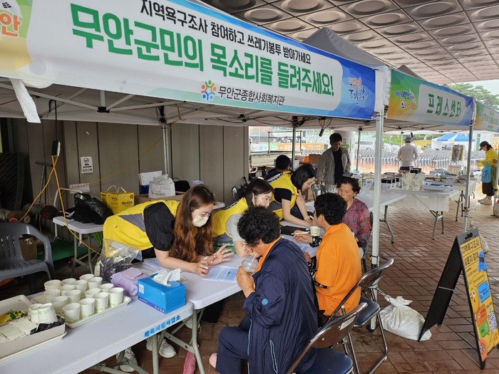 | ▲지역사회 욕구조사 및 홍보활동을 하고 있는 무안군종합사회복지관/구레군 제공 |