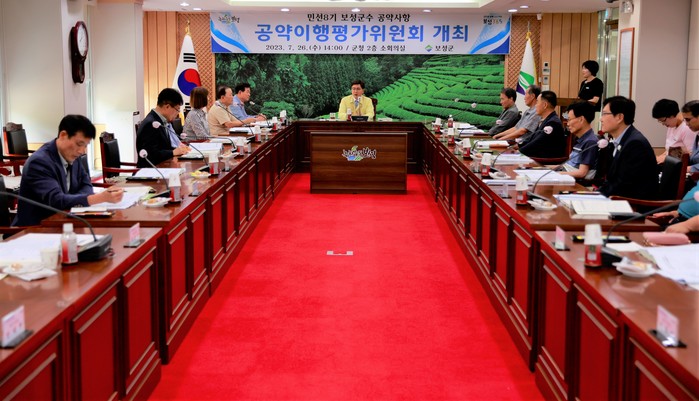 [전남=프레스뉴스] 강래성 기자= 보성군은 지난 26일 군청 2층 소회의실에서 공약이행 평가위원회를 개최해 민선 8기 군수 공약사항에 대한 이행 실적을 점검했다고 밝혔다.