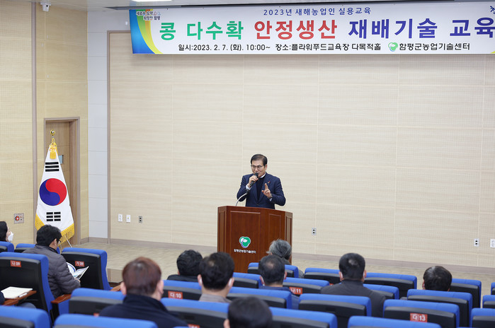 함평군은 “콩 안정 생산을 위한 재배 기술교육이 지난 7일 농업기술센터에서 농업인 50여 명을 대상으로 추진됐다”고 10일 밝혔다.