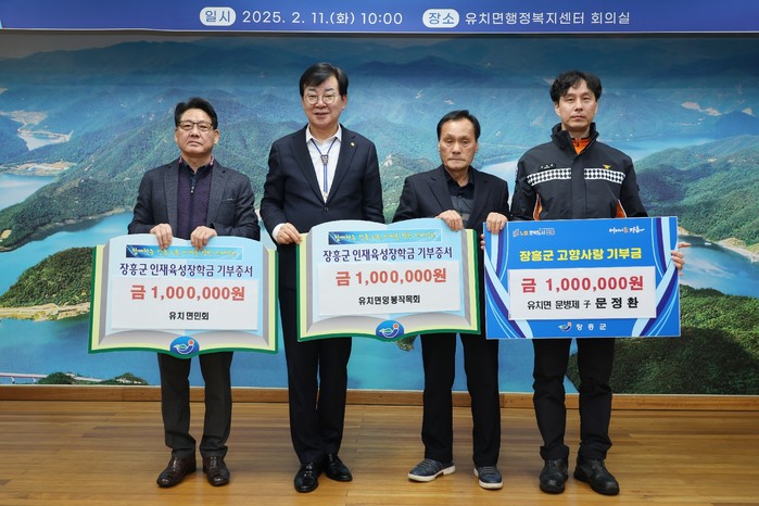 11일 유치면에서는 유치면민회(회장 문상희)와 유치면 양봉작목회(회장 안방오)가 각각 1백만 원을 기탁했고, 부산면에서는 부산면 청년회장 윤한석 씨가 1백만 원을 기탁하며 장학금 기탁에 동참했다.