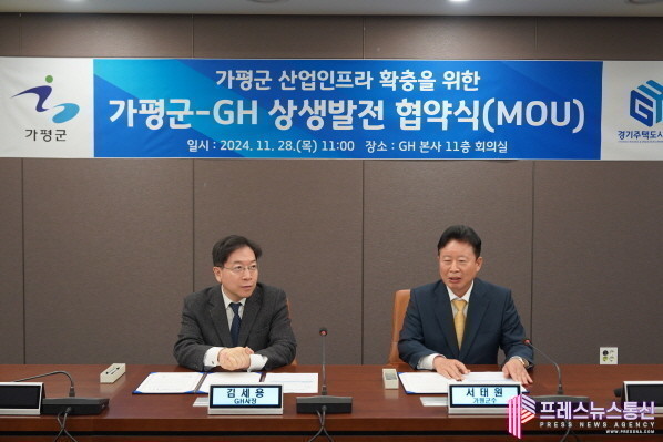 [프레스뉴스] 류현주 기자= 경기주택도시공사(GH)는 28일 광교 GH 본사에서 김세용 GH 사장, 서태원 가평군수가 참석한 가운데 가평군과 ‘가평군 산업인프라 확충을 위한 가평군-GH 상생발전 협약’을 체결했다고 밝혔다.