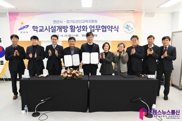 [프레스뉴스] 장현준 기자= 안산시(시장 이민근)는 23일 안산교육지원청 소통관에서 안산교육지원청(교육장 홍정표)과 학교시설 개방 활성화를 위한 업무협약(MOU)을 체결했다.