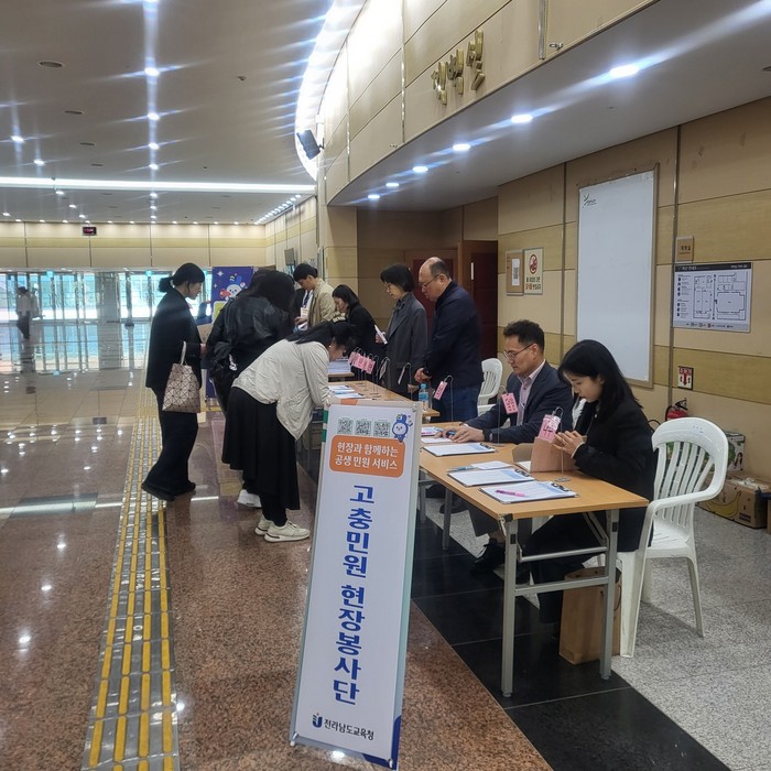 이선국 총무과장은 “이번 활동을 통해 학부모님들의 다양한 의견을 들을 수 있었다.”며 “전남교육청은 앞으로도 ‘고충민원 현장봉사단’ 운영을 강화해 교육공동체의 다양한 의견을 지속적으로 수렴하고, 이를 바탕으로 더욱 발전된 교육 환경을 조성해 나갈 계획이다.”고 밝혔다.