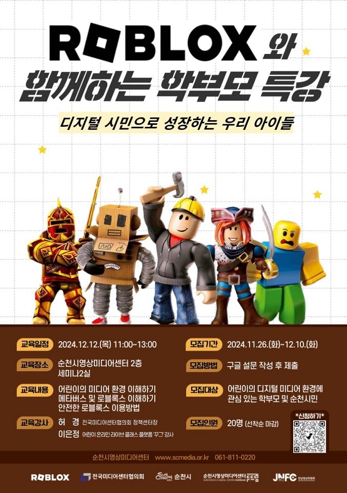 | ▲로블록스와 함께하는 학부모를 위한 디지털 시민의식 특강 포스터/순천시 제공 |