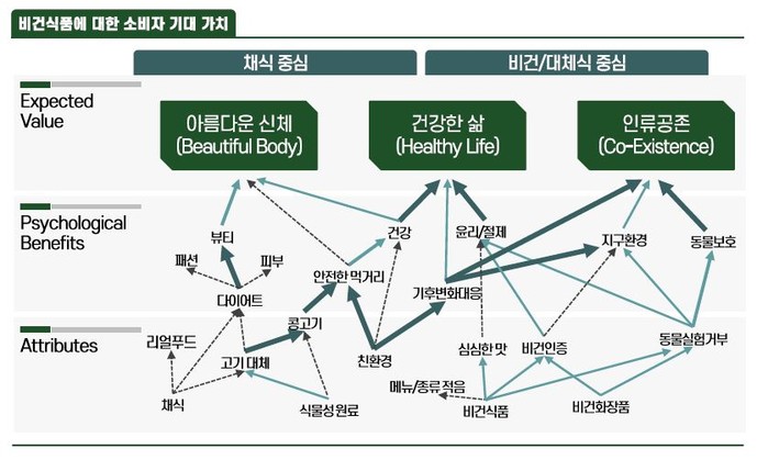 보고서에 따르면 비건식품에 대한 관심은 특히 젊은 세대로 갈수록 두드러진 것으로 나타났다. 이들은 인스타그램, 유튜브 등을 통해 인플루언서가 홍보하는 라이프 스타일과 트렌드에 민감하게 반응하며 소비를 할 때 자신의 가치관과 신념을 표출(meaning out)하는 성향이 강하기 때문이다.